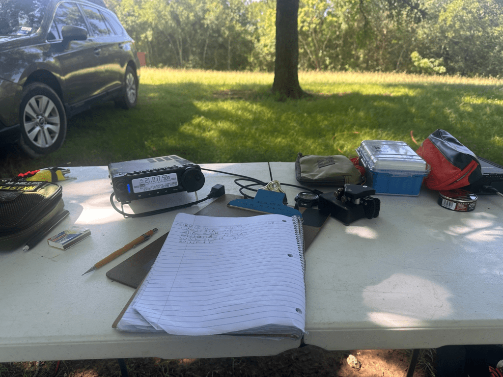 I listened to 40m for a few minutes, called QRL, spotted, and called CQ POTA. Two minutes later, N5JST was first to come back at 1354 UTC. I called on 40m for about another 15 minutes, making four more Qs before I QSY’d to 20m. All in all, 20 performed as expected, steady. I took several breaks and it still gave me 31 contacts. I hopped up to 15m, just because, and found six contacts there before I called the day with 42 contacts.